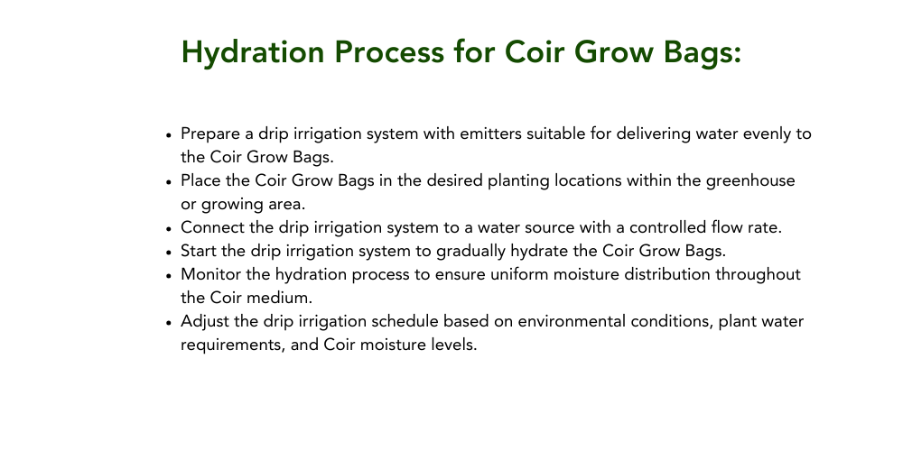 By following these simple steps, gardeners and growers can harness the benefits of coir grow bags to cultivate thriving plants with minimal environmental impact. Coir grow bags offer a sustainable and effective solution for container gardening, hydroponics, and greenhouse cultivation, making them a preferred choice for modern plant enthusiasts.